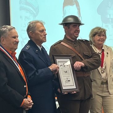 Air Force MG Cortright in the OSU Wes Watkins Center. The WWI uniformed soldier represents Chapter namesake LTG George Price Hays. He is a Captain at the OSU Air Force ROTC