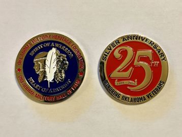 In addition to recognizing heroes, we also sell OKMHF merchandise. We offer challenge coins and short-sleeved polo shirts and T-shirts.